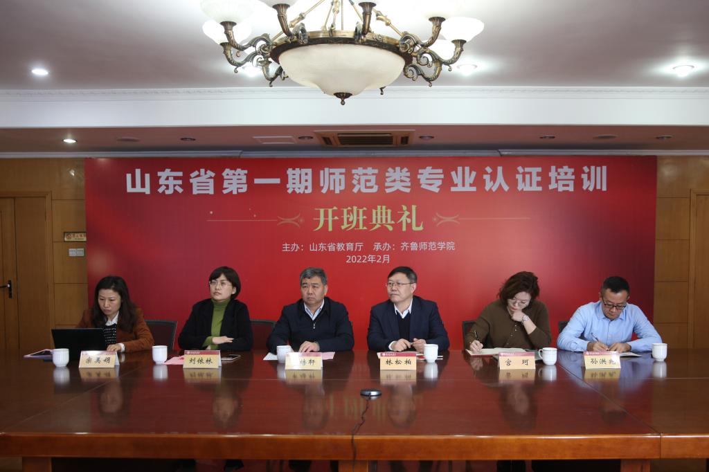 2月23日上午,山东省第一期师范类专业认证培训开班仪式在齐鲁师范学院历下校区举行。教育部教育质量评估中心副主任周爱军通过视频形式出席并作开班报告,山东省教育科学研究院院长申培轩,省教育厅教师工作处副处长刘依林,齐鲁师范学院党委副书记、校长林松柏,山东省教育科学研究院负责专业认证工作的宫珂博士,以及学校教务处、教学质量监控与评估处负责人出席了开班典礼。开班仪式由刘依林主持。