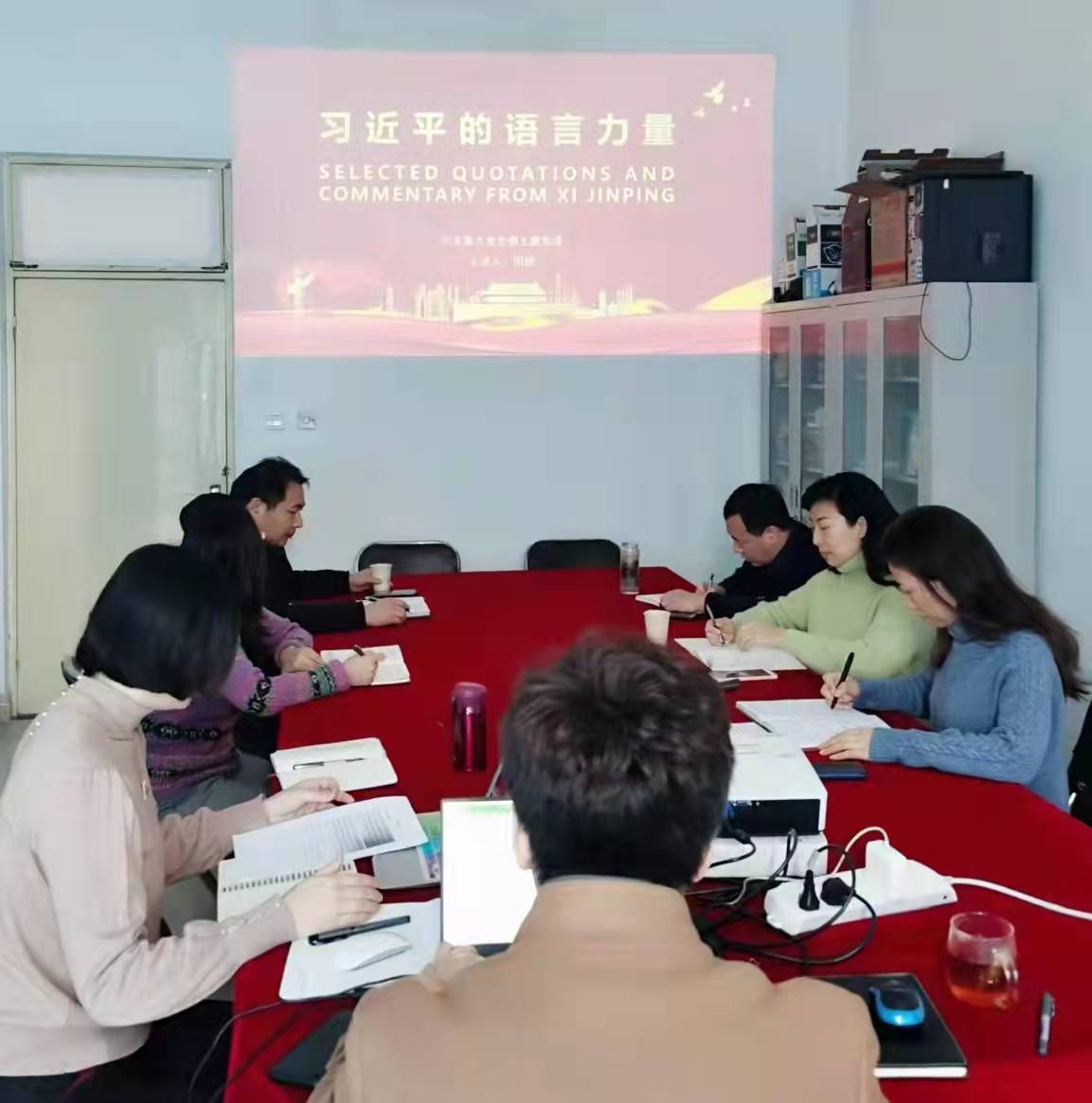 最后,田甜以《习近平的语言力量》为题讲授了主题党课。她选取了习近平总书记系列重要讲话中运用形象比喻、俗文俚语和诗文引用阐述深刻道理的经典语句,从坚持理想信念和坚定群众路线两个层面,带领大家学习了习近平总书记提出的“拧紧‘总开关’”、“钙”与“软骨病”、“人心就是力量”以及“政之所兴在顺民心,政之所废在逆民心”等富有特色的重要观点,对其语源、语义、理论价值、教育意义等方面进行简明扼要的阐释,并将这些重要观点和语句与党的十九届六中全会精神中的相关论述结合起来,让大家深刻感受到习近平总书记的平实语言中所蕴含的大智慧。此外,田甜还带领大家以双语视角揣摩和体会这些重要论述英文版本的用词和语句结构,通过语言转换时的内在翻译逻辑进一步加深对经典论述的领悟,感受语言的力量。