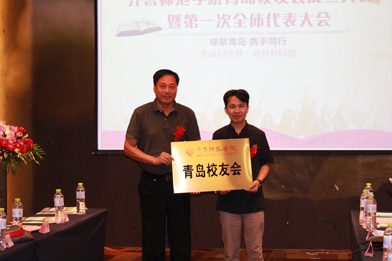 张殿臣宣布青岛校友会成立并向青岛校友会授牌。林松柏代表学校对青岛校友会的成立表示热烈祝贺,并对为青岛校友会成立付出辛勤努力的校友们表示衷心感谢。他指出,齐鲁师范学院至今已走过了69个春秋,近年来,学校取得了令人瞩目的成就,相信在广大校友的关注和支持下,在学校全体师生员工的共同努力下,我们学校的明天会更加美好。多年来,校友们秉承母校校训,在各自岗位上取得了骄人的成绩,为青岛经济社会发展做出了重要贡献,为母校赢得了荣誉,青岛校友会的成立,为我校校友工作开创了新的篇章,希望各位校友一如既往地关心支持母校,共同关注学校的发展。