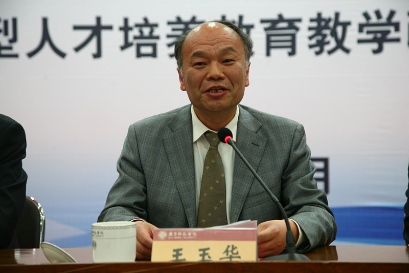 校党委王玉华书记讲话。王书记首先代表学校党委、行政向多年来默默奋战在教学第一线的教师和管理工作者表示崇高的敬意和衷心的感谢。王书记从“四个一”就推进学校教学工作出明确要求。一是坚持一个“解放”,即思想解放。要借此次教育教学改革大讨论,实现思想的大解放、观念的大更新,推动学校各项事业的大发展,实现学校的大跨越,使学校教学工作在更高层次上谋划新的发展,获取新的突破。二是巩固一个地位,即教学工作的“中心地位”。努力在全校形成领导重视教学、教师热爱教学、科研促进教学、管理服务教学的良好氛围。三是强化一个意识,即“质量是生命线”的意识。强调要切实转变教育思想观念,厘清我校在改革发展过程中存在的问题,统一思想,牢固树立科学的人才观、质量观,树立“以人为本”的办学理念。四是加强一个动力,即深化教学改革这个动力。要坚持以本科为基础;坚持以创新为宗旨;坚持以学生为本;坚持以教师为主导;坚持质量第一的思想。最后,他希望大家要齐心协力、精诚团结、集思广益,以奋发有为的精神状态,以逢山开路、遇河架桥的勇气,攻坚克难,撸起袖子加油干,在全面深化教育教学改革、提高人才培养质量的道路上不断取得新成就,以更大的决心,更多的付出、更高的标准,全面开创我校教育教学工作的新局面!