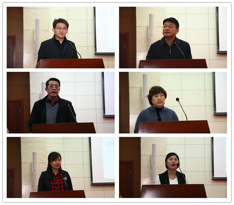 部门、学院及教师、学生代表也作了表态发言。教务处处长、迎评办公室副主任梁承锋处长在发言中指出,评估还有短短的179天,时间紧迫、任务繁重,要开放心、正常态,真实面对,积极整改,真正达到以评估促进“教学中心”、“学生中心”的确立,促进师资力量培育培养,促进教学保障和服务能力、教学质量和人才培养水平稳步提升,为此将殚精竭虑,勇于担当,不负重托,不辱使命,为我校顺利通过合格评估贡献全部力量。学生工作部(处)处长杨磊表示,要坚决服从学校的总体工作部署,服从评建办公室的工作安排,认真、细致、保质保量地完成各项工作;要严格按照学校总体部署和评估指标,制定完善学生工作迎评方案,对各阶段性的工作认真研究,周密安排,做到有条不紊,有备无患;切实提高学工队伍对评估工作重要性认识,树立责任、大局、担当意识。同时教育引导全体学生以主人翁的态度参与到迎评工作中来,在迎评过程中展现出我校学生积极健康文明向上的精神风貌。马克思主义学院院长刘振光感情真挚、态度诚恳,他怀揣“学校发展我发展,我与学校同发展”的赤子之心,深情回忆了我校的改建历史,表示评建事关学校第个人的切身利益;评建主旨在“定规矩、成习惯、注活力、促发展、锤炼文化”;要紧紧抓住评建的关键,确保评估顺利通过。化学与化工学院院长曹晓荣就当前评估的关键时刻,提出要明确目标,全员努力,抓住契机,稳步发展,狠抓教学,培养最好的学生,为合格评估和学校发展添砖加瓦。教师代表、教师教育学院薛绍聪博士从对教学本身的认识,对评估准备工作的认识两个方面谈了看法和感受。她说,此次本科教学合格评估是每一位教师个人发展的契机,应该在评建过程中与知识对话、与文本对话、与学生对话、与同事对话,实现个人发展,成为有学术视野、有学者风范,学养深厚的大学教师。校学生会主席、文学院2014级汉语言文学专业学生沈笑笑作为学生代表,向全校学生干部及全校学生发出倡议。倡议全校学生干部主动发挥表率作用、带头作用、纽带作用,倡议全体在校生牢固树立大局意识、责任意识、质量意识,争做有理想、有担当、有作为的大学生,为我校顺利通过本科教学合格评估贡献自己的力量。