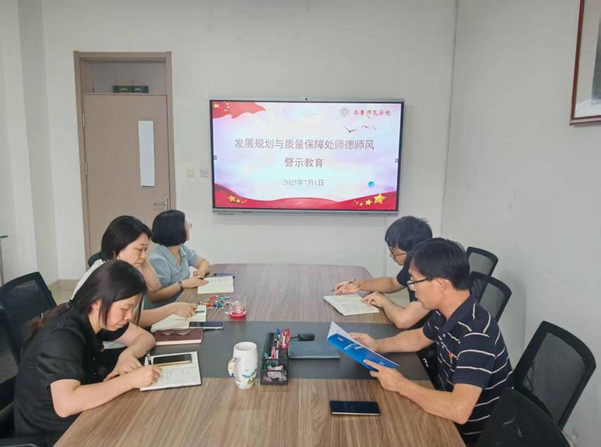7月1日,发展规划与质量保障处在1号教学楼B423召开专题会议,组织部门全体工作人员深入学习《新时代高校教师职业行为十项准则》,并开展师德师风警示教育活动,全力推进师德师风建设工作走深走实。