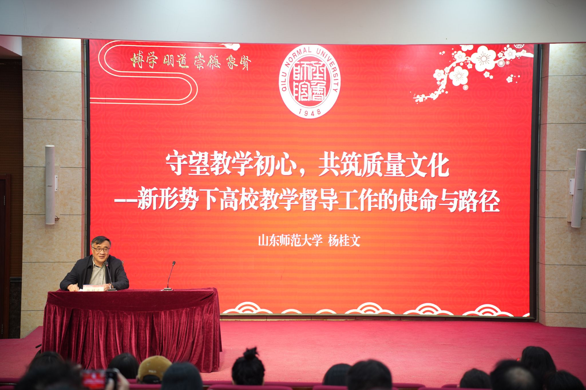 会议特邀山东师范大学教学督导委员会主任委员杨桂文教授作专题报告,报告以“守望教学初心,共筑质量文化——新形势下高校教学督导工作的使命与路径”为主题,围绕督导理念建设、督导方法与路径、督导工作如何深度融入学校发展等三个方面系统展开,为我校教学督导工作提质增效提供了坚实的理论指导与宝贵的实践借鉴。
